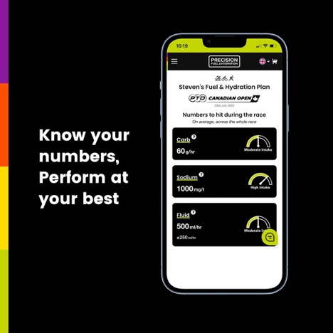 The Precision Fuel & Hydration Planner takes information about the race, the athlete and their goals and runs it through an algorithm, refined through more than 11 years of working with elite and age-group athletes around the world, to generate a tailored race nutrition plan covering how much carbohydrate, sodium and fluid to take in – including a step-by-step guide to hitting those numbers.
